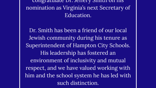 Virginia Jewish Advocacy Day is an opportunity to come together and advocate with members of the Jewish communities across the Commonwealth. Meet with your Delegates and Senators and hear from the ...