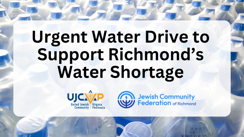In an effort to support our neighbors in need, the UJCVP is partnering with the Jewish Federation of Richmond to organize a water collection drive to help provide access to this essential resource.